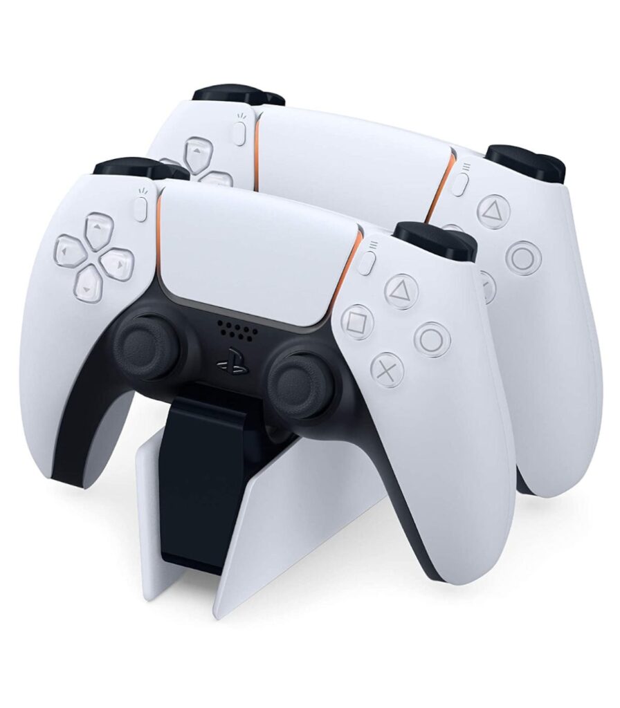 پایه شارژ DualSense برای پلیاستیشن 5 با قابلیت شارژ همزمان دو کنترلر از طریق پورت سریع EXT، بدون نیاز به استفاده از درگاههای کنسول PS5 – طراحی هماهنگ با کنسول.